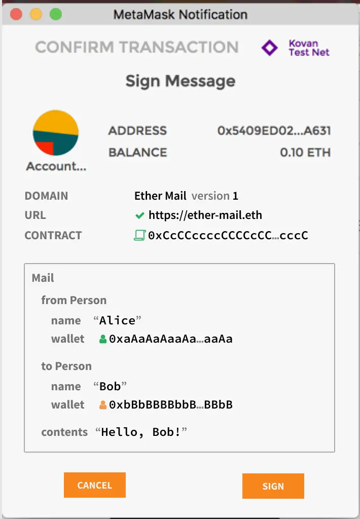 本 EIP 旨在提高链下消息签名在链上使用的可用性。链下消息签名因其节省 Gas 和减少链上交易数量而被广泛采用。目前,已签名的消息对用户来说是一个不透明的十六进制字符串,几乎没有关于消息的上下文信息